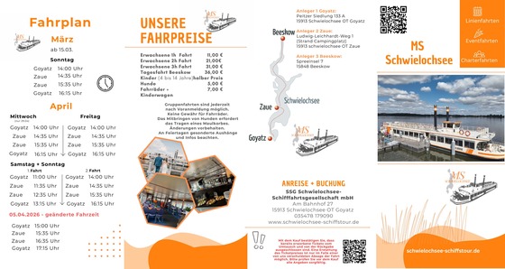 für die Beförderung mit Schiffen der Schwielochsee-Schifffahrt Gesellschaft mbH (SSG mbH)